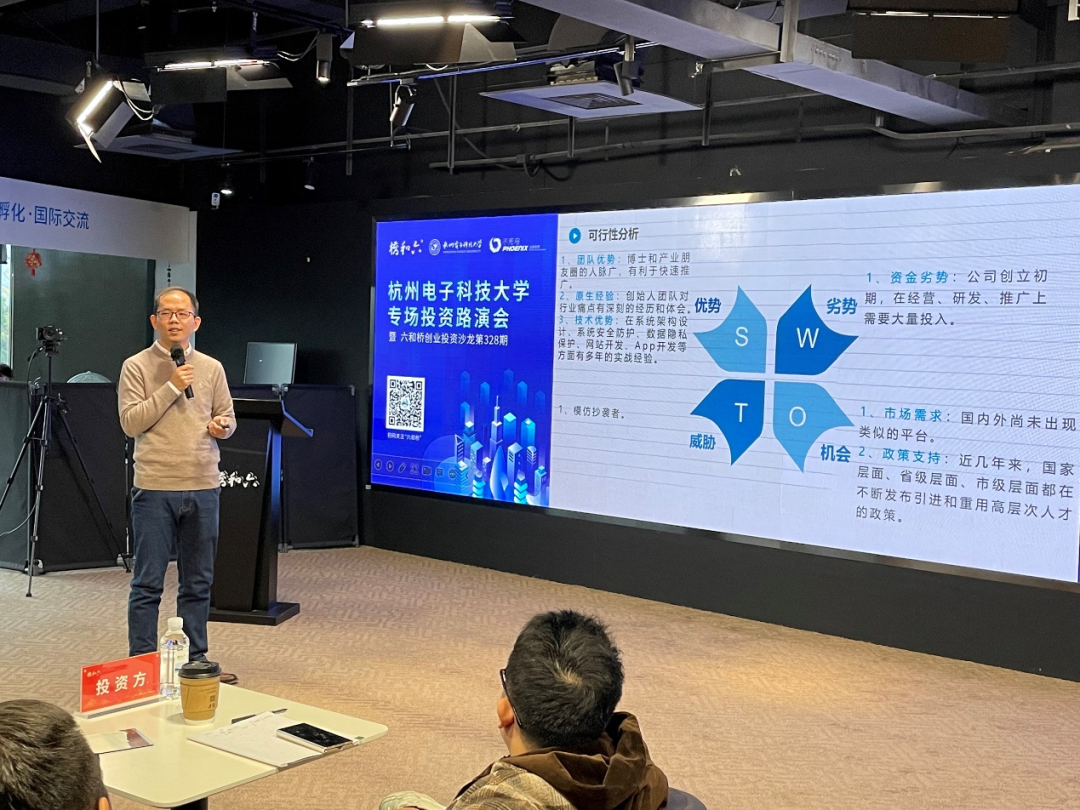 为赋能企业成长升级,提升区域经济活力,促进投融产融精准对接,推动校企深度结合,近日,杭电滨江创新中心联合六和桥创投在六和桥江景路演厅成功举行杭州电子科技大学专场投资路演会,我校四位老师到会做项目推介。六和桥创投、俱成投资、内核资本、十天木创投等20余家投资机构、银行和相关企业代表参加本次活动。