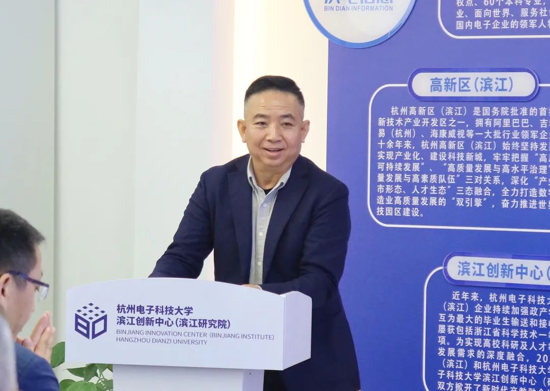 杭州电子科技大学滨江创新中心副主任王思轩致欢迎词并对中心团队成员董源教授与双友的成功合作表示热烈祝贺。他表示,滨江创新中心立足高新区(滨江),积极响应高新区(滨江)相关政策,注重技术创新与成果转化、创新人才队伍建设,将着力打造成为有特色的“产、学、研、培”紧密结合的科技创新和研发平台。