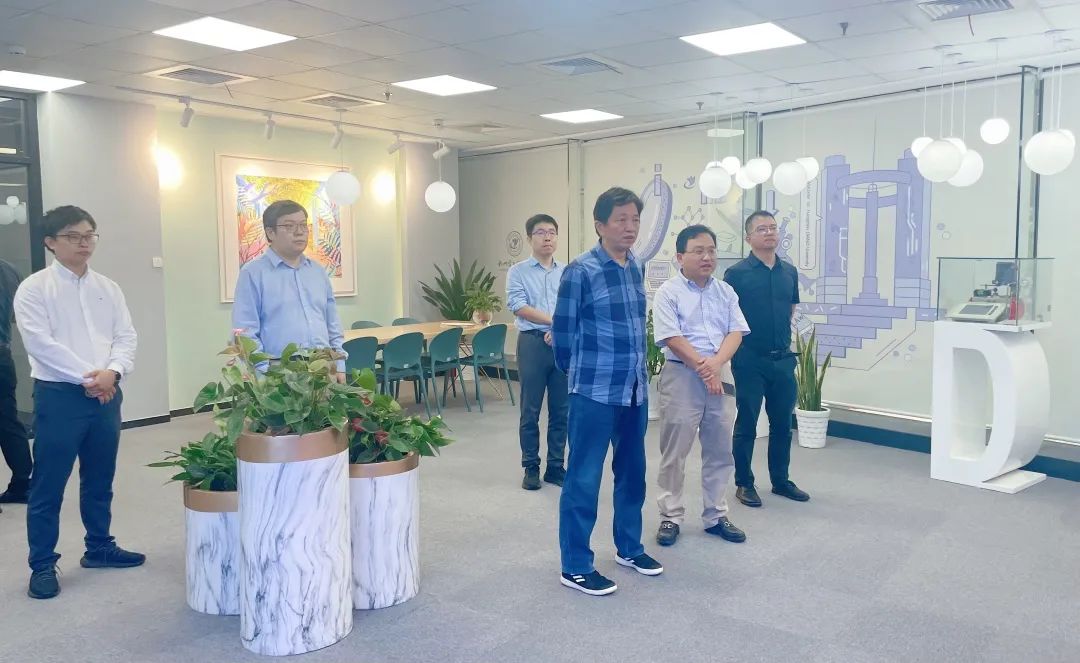 薛晓飞一行先后参观了创新中心办公区、展厅、实验室等场所,了解中心的建设发展概况、协同创新、创业孵化、产学研合作等情况。随后在中心会议室展开座谈。