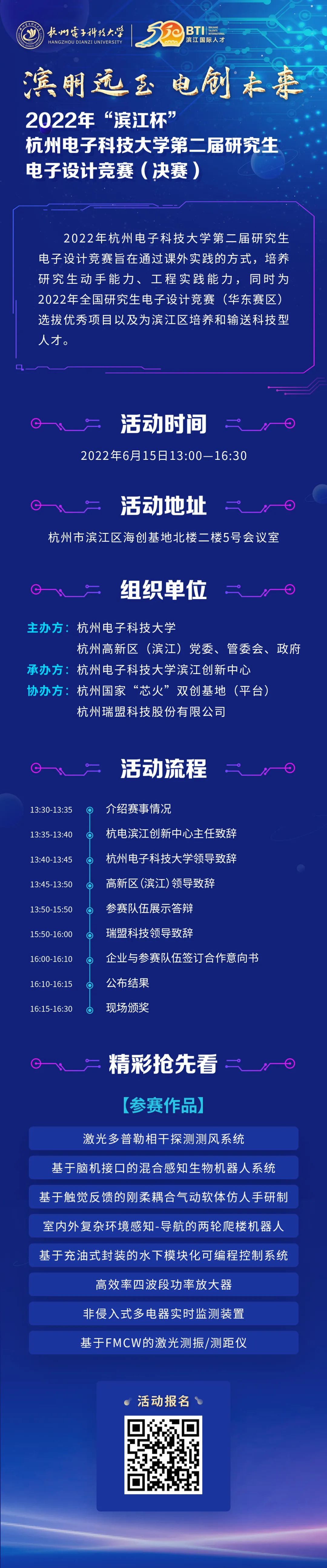 2022年“滨江杯”杭州电子科技大学第二届研究生电子设计竞赛,6月15日决赛见!