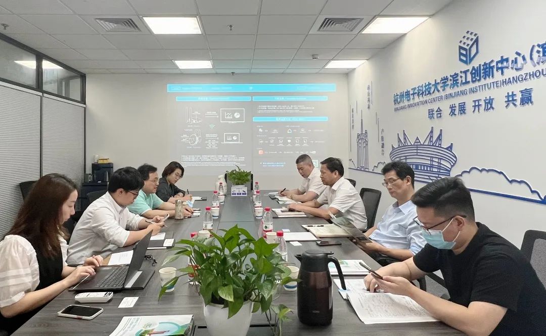6月7日,杭州高新区江北管委会党组书记、主任张志真,副主任黄建民,杭州正策信息科技有限公司总经理叶雄一行来访杭电滨江创新中心调研交流,中心主任俞东进教授与及相关人员热情接待,并开展座谈交流。