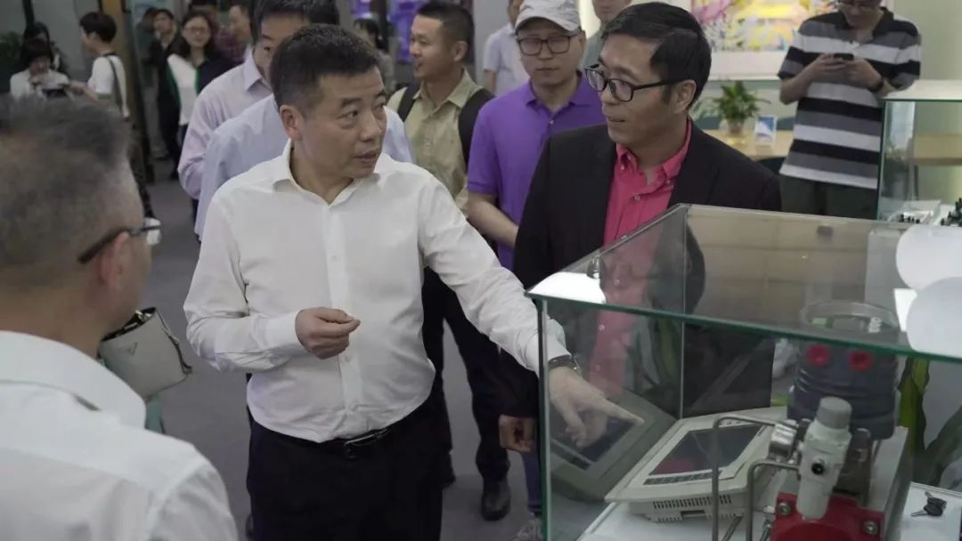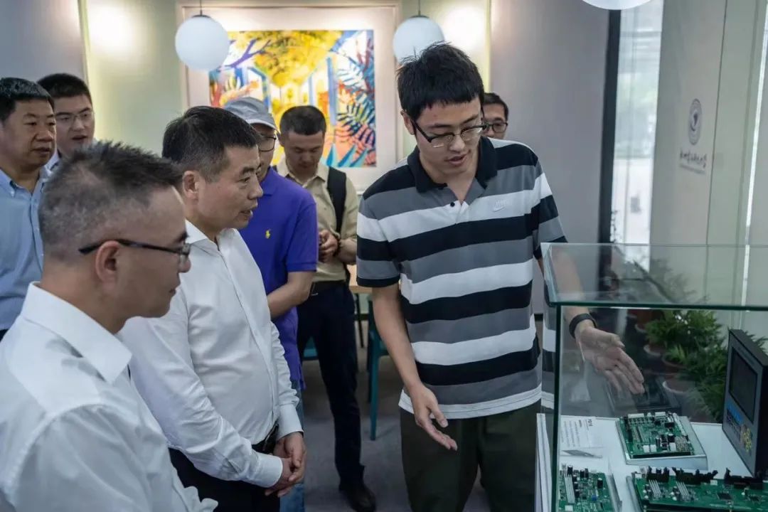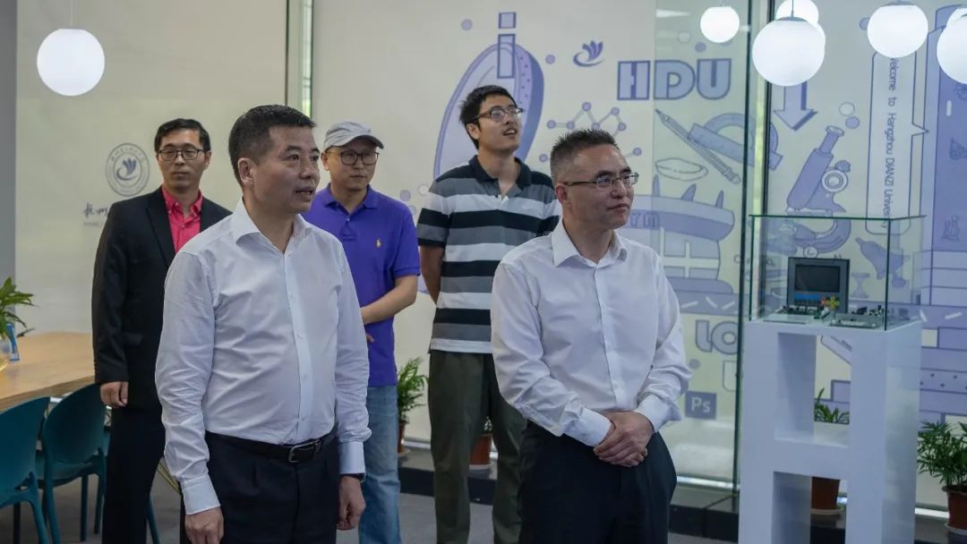 仪式结束后, 校地双方领导一起参观了杭电滨江创新中心和校友企业若联科技,并与部分校友代表进行了亲切的交流 。